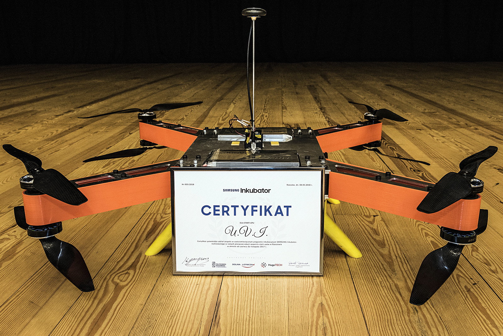 Kiedy otwarto Inkubator SAMSUNG na terenie Politechniki Rzeszowskiej, twórcy UVI wysłali zgłoszenie. - Myśleliśmy, najwyżej odmówią i nic się nie stanie – dodaje A. Twardy. Podczas przesłuchań zaprezentowali swoją koncepcję wynalazku przed komisją i otrzymali miejsce w pierwszej rundzie inkubacji. Po wielu miesiącach pracy oraz wsparciu Inkubatora zbudowali już drugi fizyczny prototyp robota latającego. Obecnie trwają końcowe prace nad skanerem laserowym.