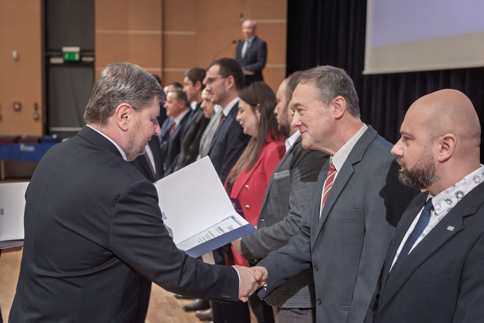 Uroczystość poprowadził prorektor ds. nauki dr hab. inż. Lesław Gniewek, prof. PRz. Dyplomy nagród wręczył rektor prof. dr hab. inż. Piotr Koszelnik. w towarzystwie dziekanów.