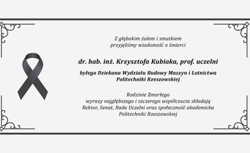Rodzinie Zmarłego wyrazy najgłębszego i szczerego współczucia składają Rektor, Senat, Rada Uczelni oraz społeczność akademicka Politechniki Rzeszowskiej.