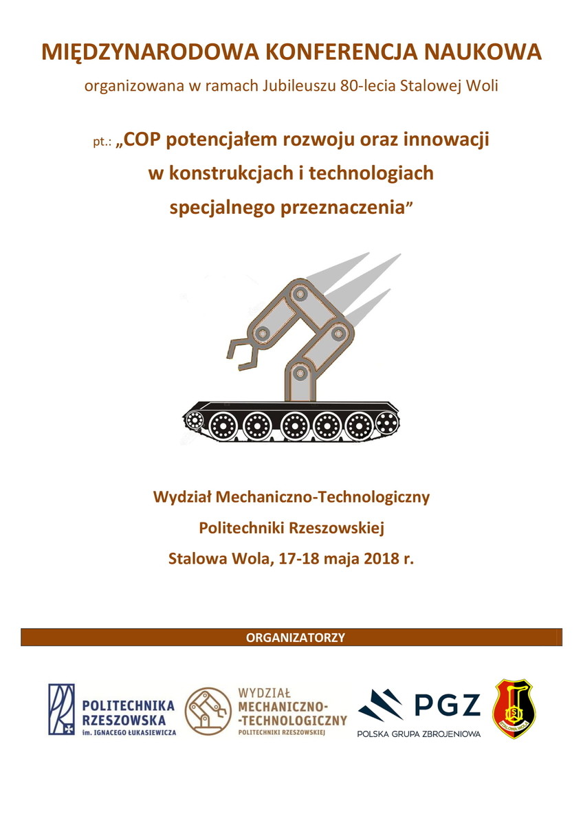 Konferencja jest organizowana wspólnie przez Wydział Mechaniczno-Technologiczny Politechniki Rzeszowskiej w Stalowej Woli, Polską Grupę Zbrojeniową oraz Miasto Stalowa Wola w ramach Jubileuszu 80-lecia Stalowej Woli. Więcej szczegółów na temat konferencji można zaleźć w zaproszeniu.